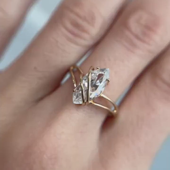 Beautiful Gold Wrapped Ring, Glass Marquise Cut Stone Wrapped in Yellow Gold